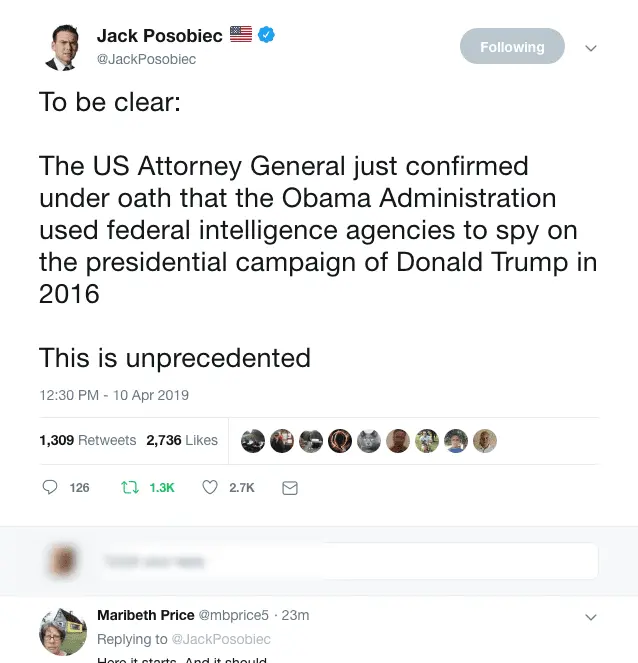 BREAKING: Attorney General Bill Barr says “I think spying did occur” against the Trump campaign under President Obama.