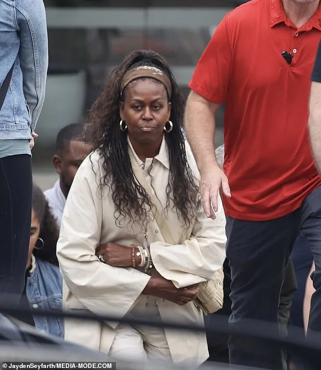 Michelle Obama was spotted looking less than impressed following a ritzy beachside dinner with husband Barack in Sydney on Monday, as the pair continues their visit Down Under for a scheduled speaking tour.