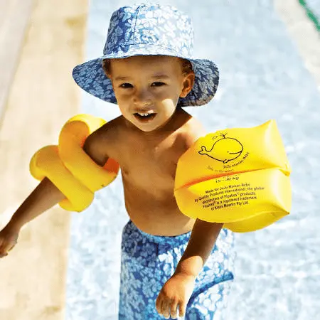 He took off his floaties for the photo op......