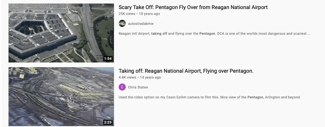 Numerous videos of commercial aircraft taking off near and over the Pentagon are on You Tube.