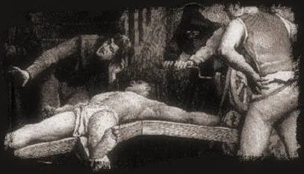 Everyone has seen "the RACK" in movies: The rollers of this RACK pulled the victim's wrists and ankles in opposite directions to tear his body apart. A spiked drum might be installed to disembowel the face-downward victim. There was also a bench held which victim immobile while he was slowly SKINNED ALIVE with a scalpel-like instrument. Salt was rubbed into the raw flesh to make for a more horrifying experience.