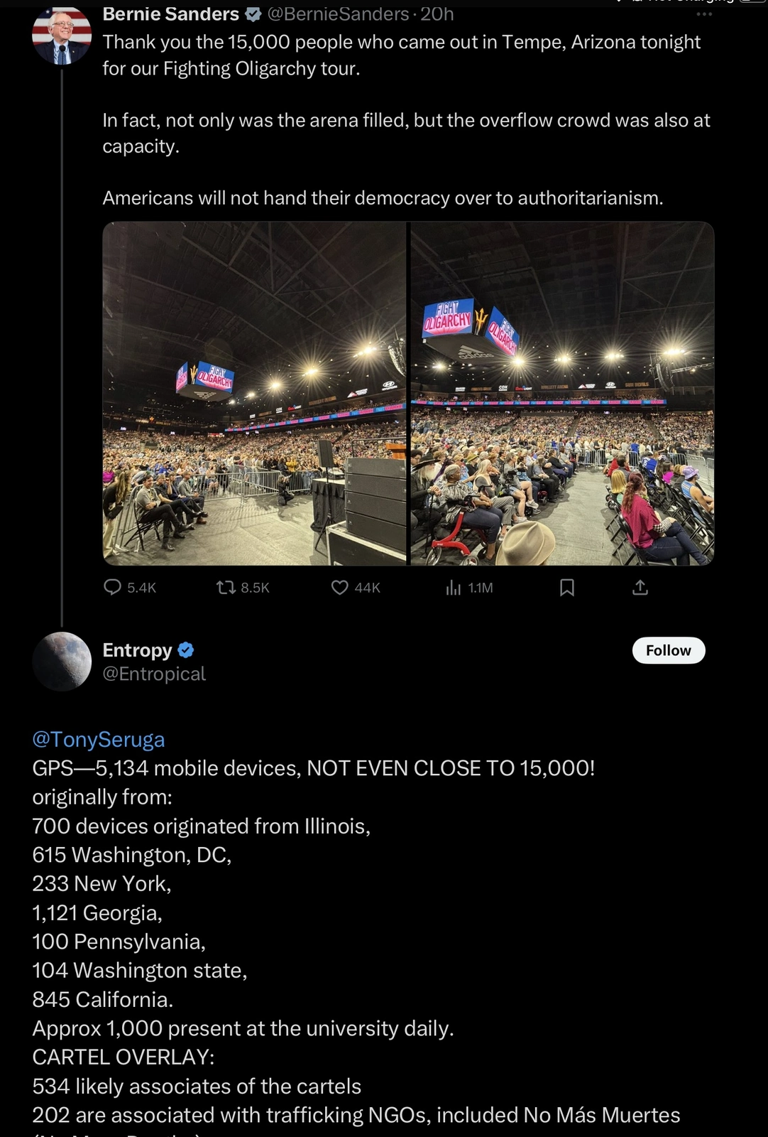 I don't read bs from twitterx.He lied about his rally in Tempe. The stadium only houses 5,000. He claimed 15,000.