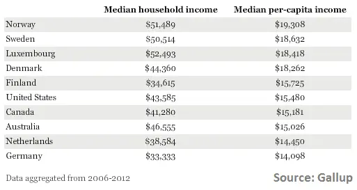 Most European countries (including Germany, Sweden, Denmark and Belgium) if they joined the US, would rank among the poorest one-third of US states on a per-capita GDP basis, and the UK, France, Japan and New Zealand would all rank among America’s very poorest states, below No. 47 West Virginia, and not too far above No. 50 Mississippi. Countries like Italy, S. Korea, Spain, Portugal and Greece would each rank below Mississippi as the poorest states in the country.