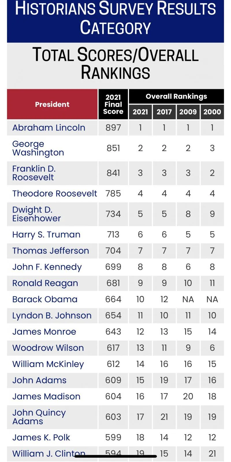 I stick with Obama as second best after Eisenhower and better than Reagan
