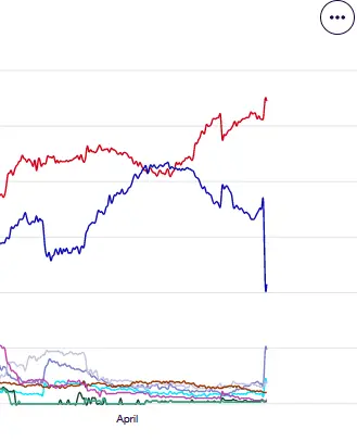I say there remains a good chance that Joe Biden has been for a while now just a figure head(rubber stamper) @ best. The bureaucrats most likely have been running the executive office along with VP Harris, which looks to have all her faculties up & running. What surprised me was it sounds like the DNC just bypassed VP Harris altogether & are busily searching for other lefty puppets for their next potential VP/POTUS stand-ins. That tells me that the DNC used Kamala Harris as a "sales pitch" because she is female & of mixed ancestry. A rubber stamp VP & POTUS like who was or is really in charge of the executive branch???Holy shit. Scroll down a little to see the ongoing graph. Biden is sinking in quicksand.