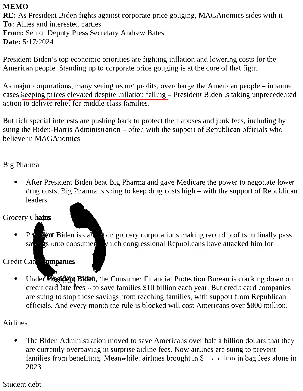 On Friday, Senior Deputy Press Secretary Andrew Bates released the following memo to Democrat Allies....