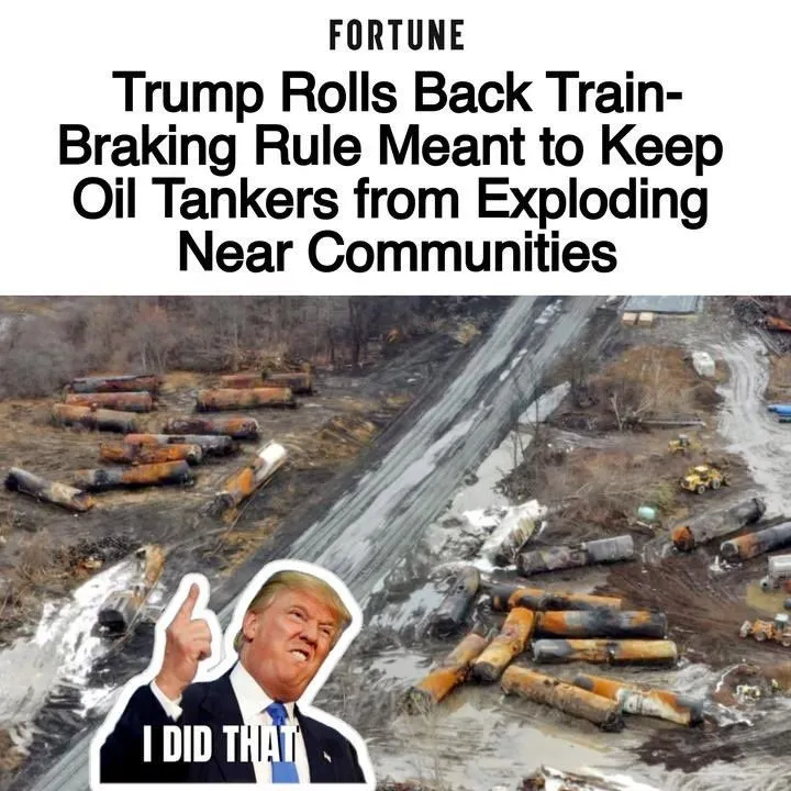 How many times do you morons need to be told that the regulations you’re crying about would not have even applied to this train? This is on Xiden and Buttplug no matter how much you whine about Trump.They also gave to congressional republic during the first two years of the former fuckup to lower regulations.