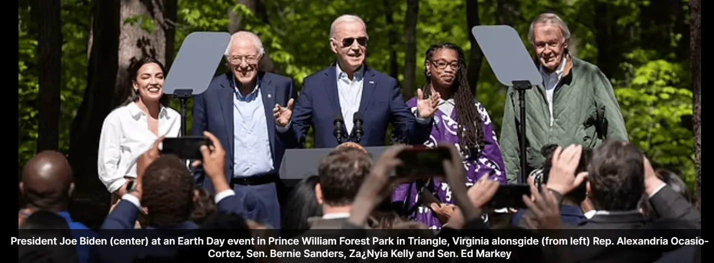 AOC and fellow progressives, Sens. Bernie Sanders and Ed Markey, were tapped to be the opening act at an event in which the president announced an expansion of the American Climate Corps, a green jobs training program, and more money toward residential solar panels.