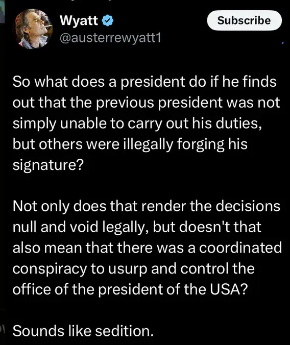 Biden's flabby ass must be dragged kicking and screaming back before the Congress and EVERY ******* SINGLE PAPER signed under his administration via autopen or can be shown to be a mechanically generated traced-copy auto-signature must be questioned with Biden being asked to recount his signing of that document by clearly stating what it was that he signed.