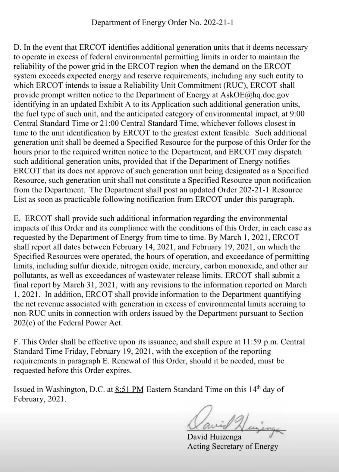 A week before, Texas begged for help and asked for DOE to lift federal regulations barring state's energy output.