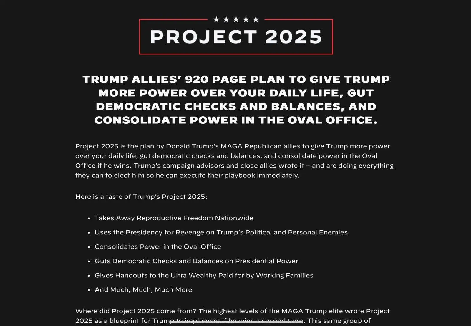 "Despite the Biden campaignās lies and the publicās misunderstanding, Project 2025 is not Donald Trumpās creation. It is a project of the conservative Heritage Foundation, and Donald Trump has repeatedly clarified that he does not control it and is not involved with it."
