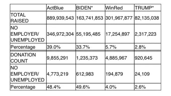 Data from the Take Back Action Fund showed that a VERY high percentage of unemployed people donated to the Biden campaign