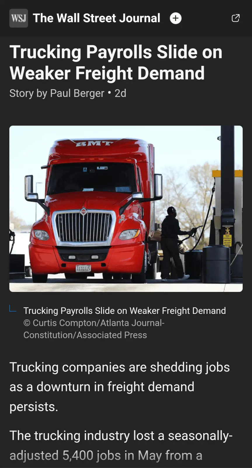 “Having drivers leaving the market is a positive thing because that’s how we get rates back up,” said Paul Svindland, chief executive of STG Logistics, a privately held logistics provider based in Bensenville, Ill.