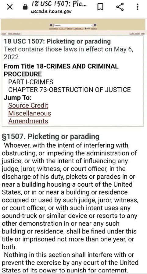 Peaceful doesn't make a difference. They are clearly attempting to coerce a specific Supreme Court justice to rule a certain way on a case before the court. That is unlawful. Period. They can peacefully protest outside the court all they would like, but when they single out individual members at their homes, they have overstepped their rights.