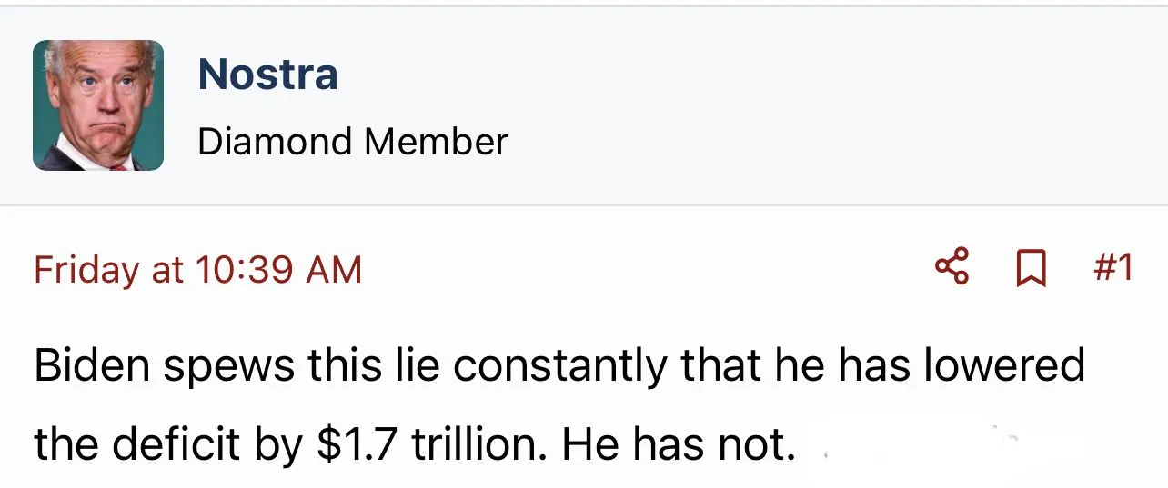You're so brain-dead, Dumbfuck. Yes, Biden was proven correct. You were shown how the FY2022 deficit was $4.2t while 2 years later, the deficit was $2.5 trillion. That's a decrease of $1.7 trillion, just as Biden said.