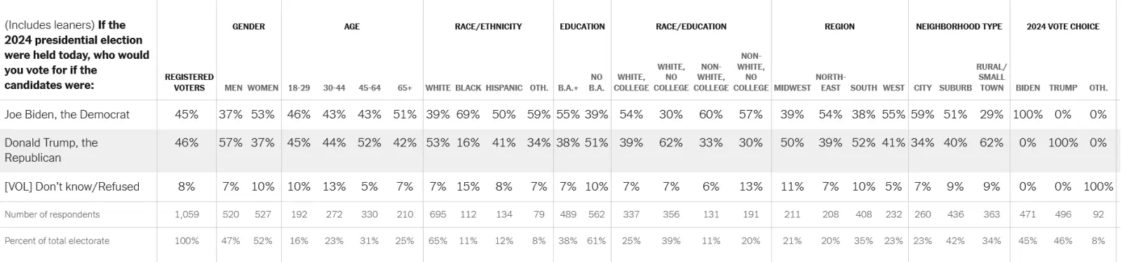 Party affiliation is the best indicator, haha.Likewise, demographics matter.