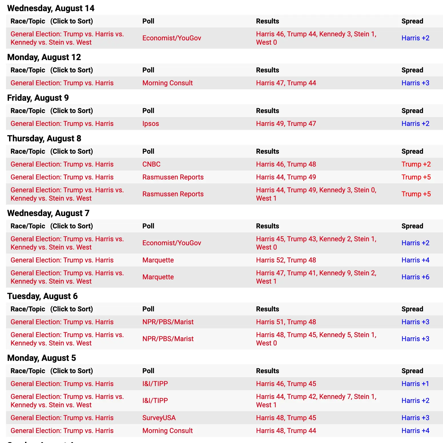 And recent polling, 12 to 3 Harris. With 2 of those 3 being Rasmussen...that was off by 350% in the last election.