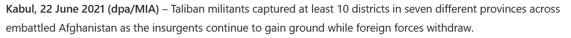 " Further proof we are far better off, getting the hell out. It also lessens my concerns about friendly Afghanis on our payroll, left behind, as I suspect their support was based on steady paychecks from us, not overriding loyalty and patriotism to their country." ..........................