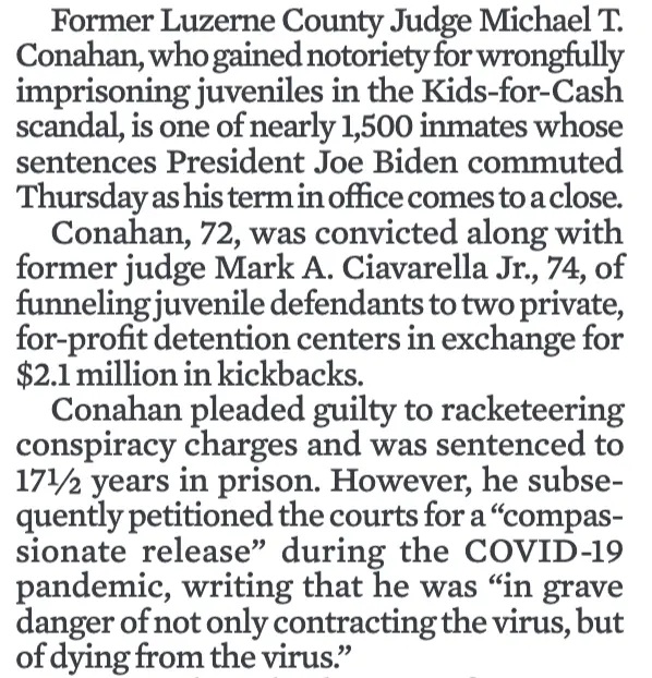 Just saw in the local paper this morning that Biden commuted the slimy despicable "kids for cash" creep.