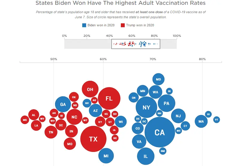 All of the states with the highest adult vaccination rates went to President Biden in the 2020 election. But the vaccine divide is not just about politics.