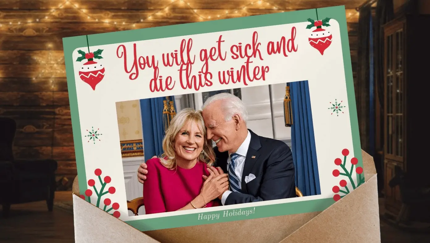 Yes! He got my message to send them to all the unwashed and unvaccinated people this year!!!!!White House Sends Out Christmas Cards With Heartfelt Message, 'You Will Get Sick And Die This Winter'