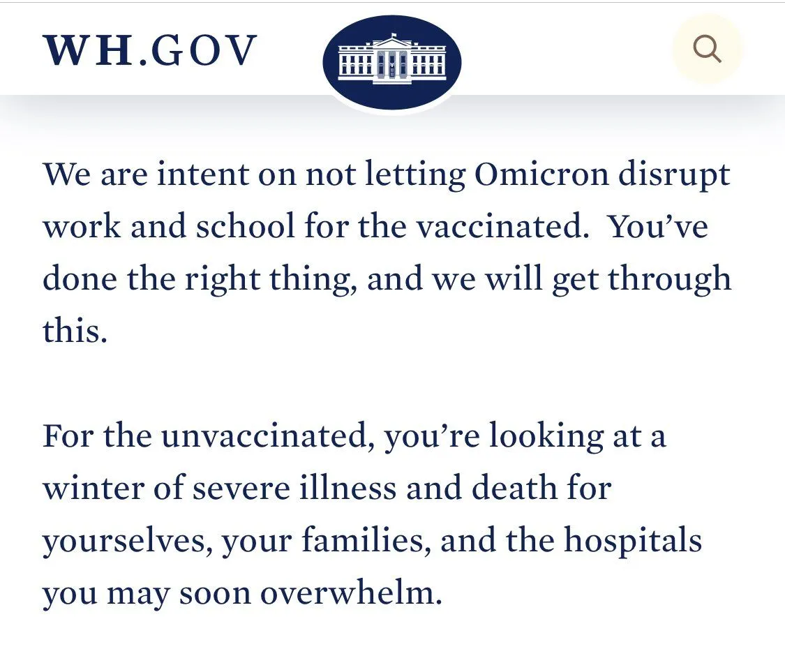 Protected? Is that why you live in total fear?Actually the vaccinated people are still protected from Omicron. The unvaxxed face severe illness and death. If people stopped opposing vaccination, these new strains would dies off quickly without needless deaths and suffering. The opposition to vaccination based on the disinformation being pushed has gotten out of hand.