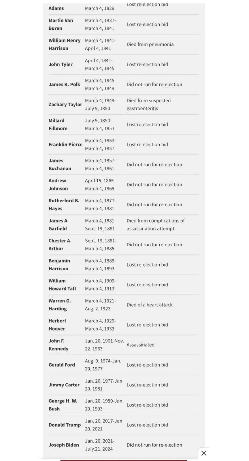Not all United States presidents seek or win re-election. Here is the list of the country’s leaders who were in power for only one term or less.