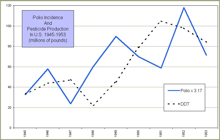 The is a close correlation between the DDT fumigation campaigns during the second half of the 1940s and the early-1950s in the United States and the dramatic increases and decline of polio during those years.