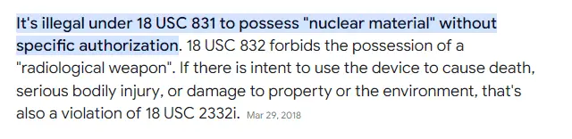 It is illegal to own a Nuke as I pointed out in the US code I pasted in dipshit.You can whine all you want, but you were wrong![]()