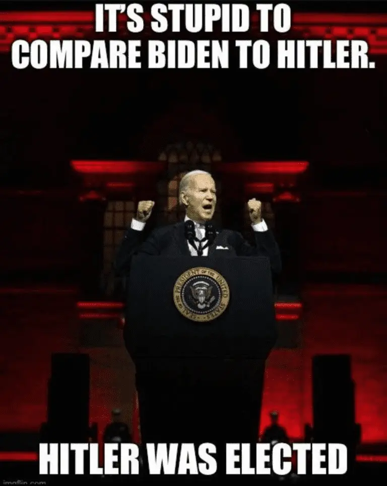 Y'know, I just looked at the OP "Hitler moment" thread title, and I wondered to myself what would have happened in the early 1930's if someone like Biden had tried to warn the German people about what they were allowing into their politics, their society, their culture.The MAGAt-cult is very offended by anything patriotic that doesn't have trump front and center.