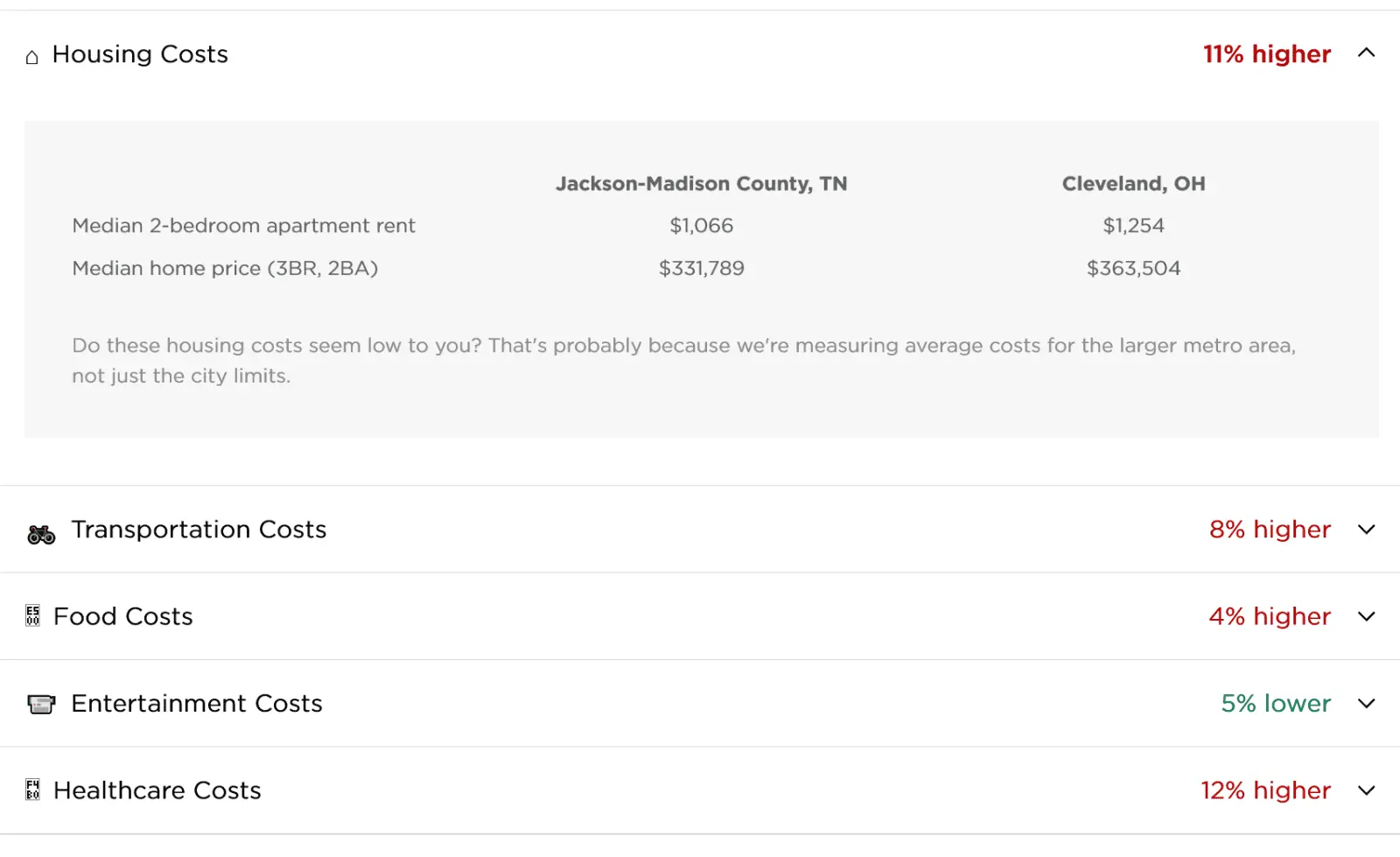 Ohio also taxes your income, vs Tenness does not. Also figure Cleveland,Cuyahoga County, OH has the highest property taxes in the state.