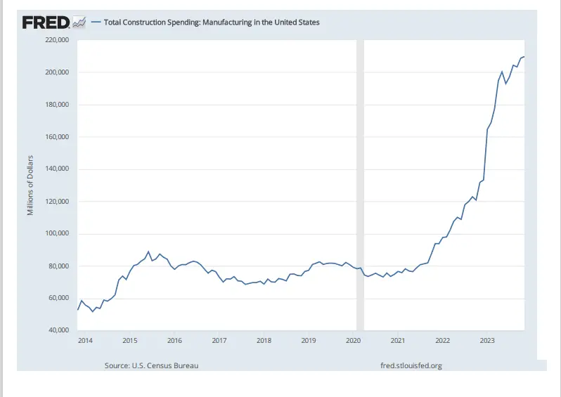 The best indicators are the strong labor market, increasing wages and profits (which will bring higher tax receipts) and above all the truly remarkable levels of new factory creation in the U.S., which should bring increasing efficiency and domestic productivity.
