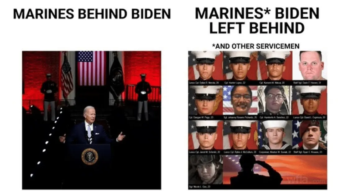 THank God only 60 of our Military Heroes died. And God Bless every single one. And President Trump i'm sure met with every family for every son or daughter, wife, husband lost...without checking his wrist watch. And another big damn difference. Trump didn't start that war. He was handed it. And he didn't leave in the manner that Biden did. It was an embarrassment what Biden Did and how he did it.