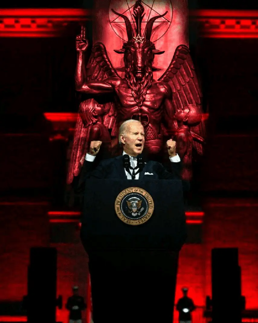 Biden shaking his fist in front of Beelzebub the Bull. How appropriate.​
