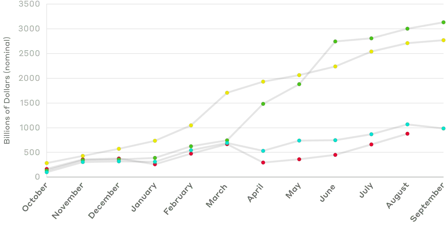 Trump borrowed only $2 trillion less in 4 year, as Obama did in 8 years. Biden on course to borrow even more than Trump.
