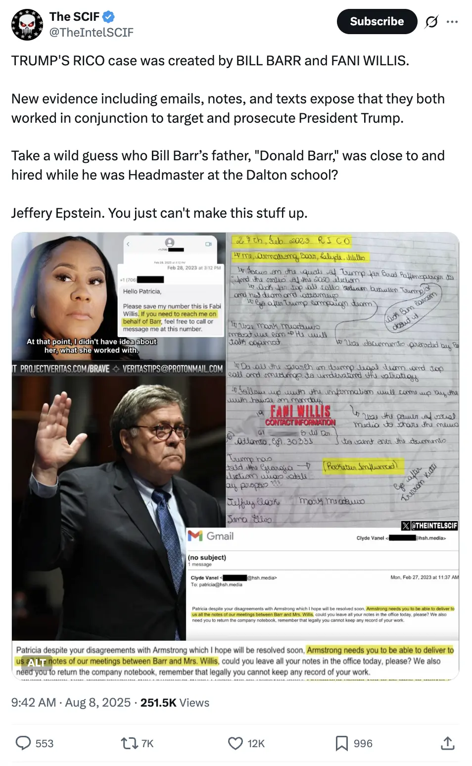 Apparently, Bill Barr was the mastermind, Fani Willis, Jack Smith and the rest of the minions were to carry out the lawfare. He wanted RICO because he said it was hard to defend against.