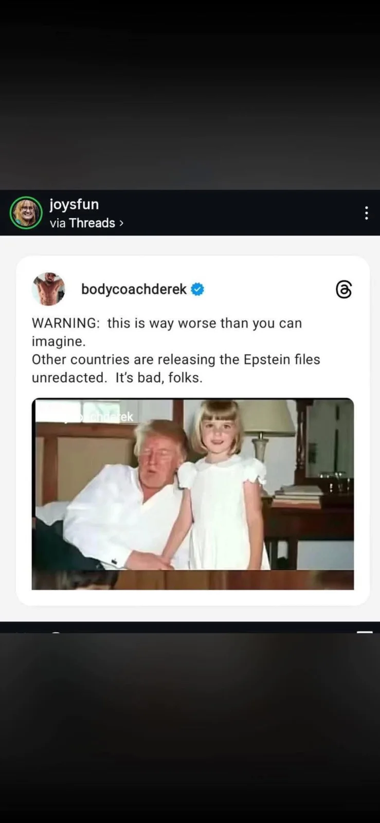 Cut the bullshit. It would be all over the Internet, yet only shows up on FB and IG.Have you bothered going through the files, or did you choose to remain ignorant on the subject?