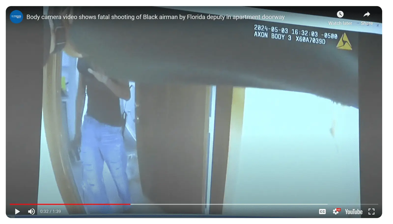 Sheriff’s Office released a statement claiming that the deputy who shot Fortson “reacted in self defense” after encountering the senior airman who was armed with a gun.