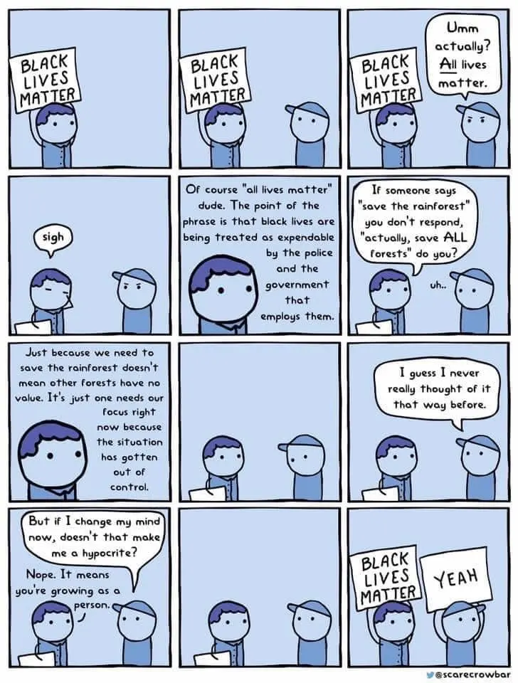 But BLM is not doing itself any favors refusing to acknowledge what you just said and being violent to those who want ALL lives to matter. I get it. I see your point. But BLM would have more support if they didn't get so riled up over something that is common sense to want to achieve..that ALL lives matter...especially those who are downtrodden.