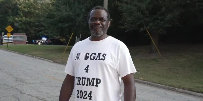 Asked why he was there protesting in favor of Trump, the man said: āYou wanna know why Iām here to support President Trump? Because they done did a black man like this for decades. Making up charges. I know Trump is innocent. I support Trump against this corrupt two-tier justice system, thatās why Iām here to show my support as a black man for Trump, and Iām wearing my shirt āNiggas 4 Trump 2024ā ā and I mean that,ā he said.