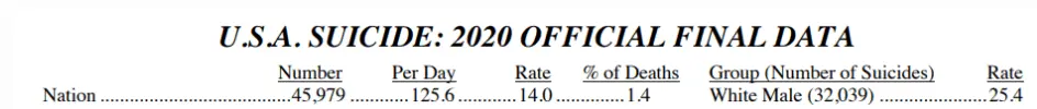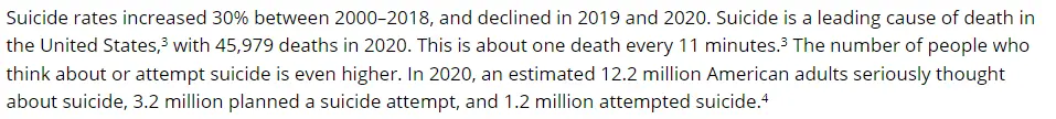 Suicide is a leading cause of death in the United States, with 45,979 deaths in 2020.