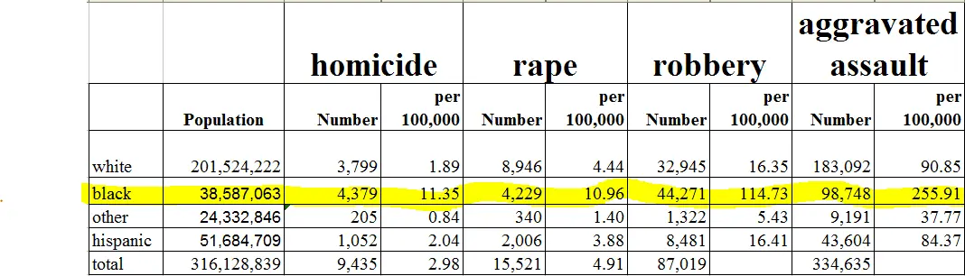 But you're right that all of it needs to stop. We need to stop the crime tolerance at all levels in all communities. Make examples of all violent offenders so that others will consider the consequences before harming other human beings. We should not lessen the white-on-white crime by pointing the finger at blacks and saying, "but they do it more than we do." But it's not as simple as whites working to stop white murder and ignoring black on black murders while blacks work to stop black on black murder and ignore white on white murder.