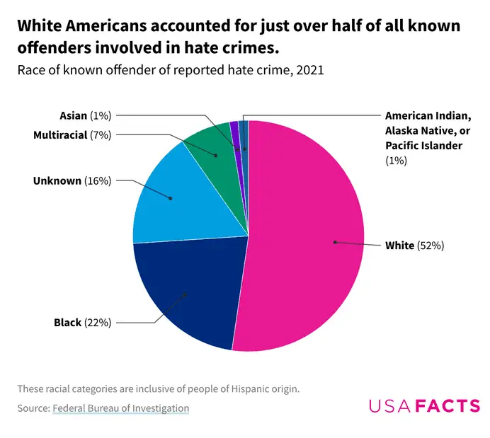 In at least 13 states, Black Americans were listed by law enforcement as the perpetrators in hate crimes at a rate roughly