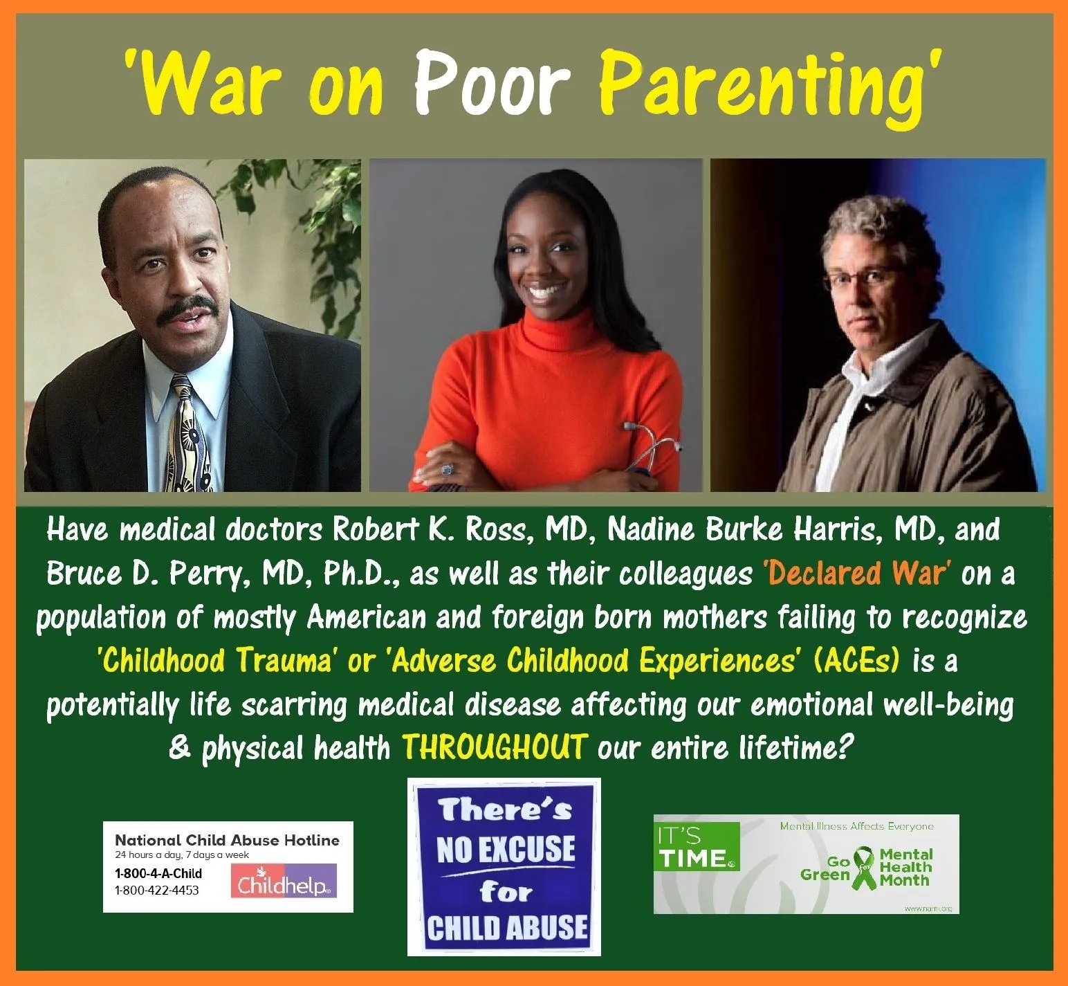 A few of these medical professionals are Dr. Nadine Burke Harris, MD, pediatrician & CEO of the 'Center For Youth Wellness. Dr. Robert K. Ross, MD, President and CEO of The California Endowment and Dr. Bruce Perry, MD, Ph.D, Senior Fellow of the Child Trauma Academy in Houston, Texas and an Adjunct Professor of Psychiatry and Behavioral Sciences at the Feinberg School of Medicine in Chicago, Illinois.