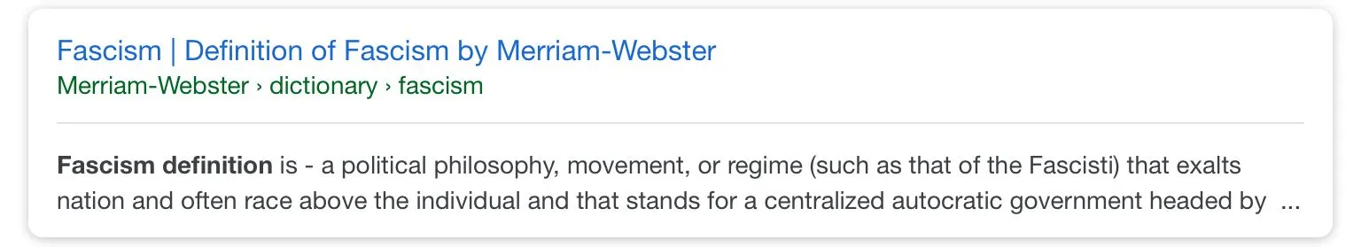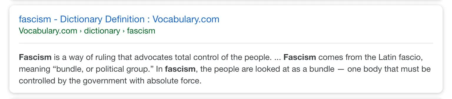 Only by ignorant left-wing lunatics who swallow the propaganda. Here are the official definition right - please show the class where it says “right-wing” anywhere. Oops!Fascism is defined as extreme right wing