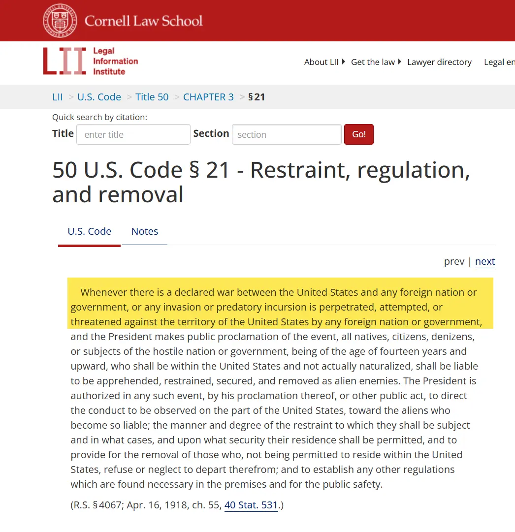 It doesn't just say "during a declared war".