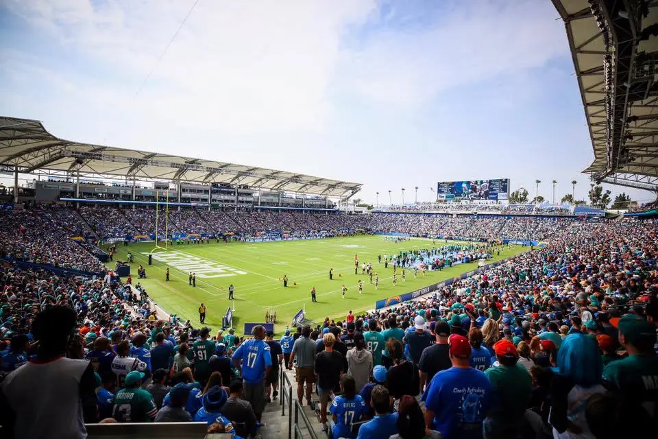 Now remember here's an actual shot at the start of a game from the Chargers stadium (temp deal in LA). Which matches with the gate counts of the stadium being well over half full. So they are out (Don't care how many empty seats you can find taken at half time or end of blowouts, the stadium does get mostly full during games).