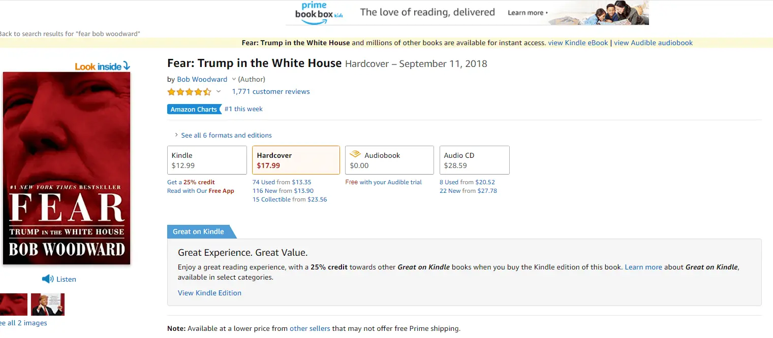 You stated "Woodwards book still seems to be selling well", which is not the case as you can clearly see on the Amazon Charts "Most Sold" web page. It ranks #14, way down below Tucker Carlson's "Ship of Fools" and Bill O'Reilly's "Killing the SS."