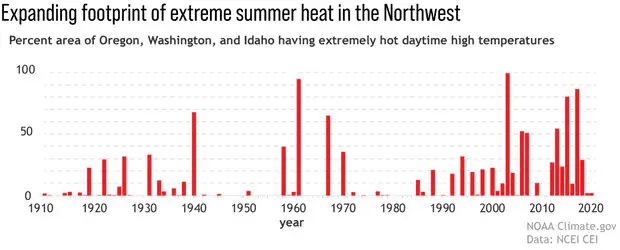 Notice the extremely uneven bar graph. If the heat waves are caused by humans then why isn't the graph more consistent? Don't you think it's odd that there was no heat wave at all in 2009, 2011, and 2012, and very little in 2020, and then whammo we get the big heat in 2021? That doesn't sound like the heat was caused by us.