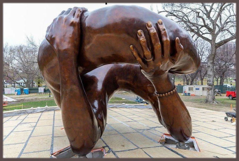 In one angle it looks like someone sticking their head up their own ass... another angle it looks like someone cannibalizing a leg... Holy Cow... hands down one of the worst public statues I have ever seen